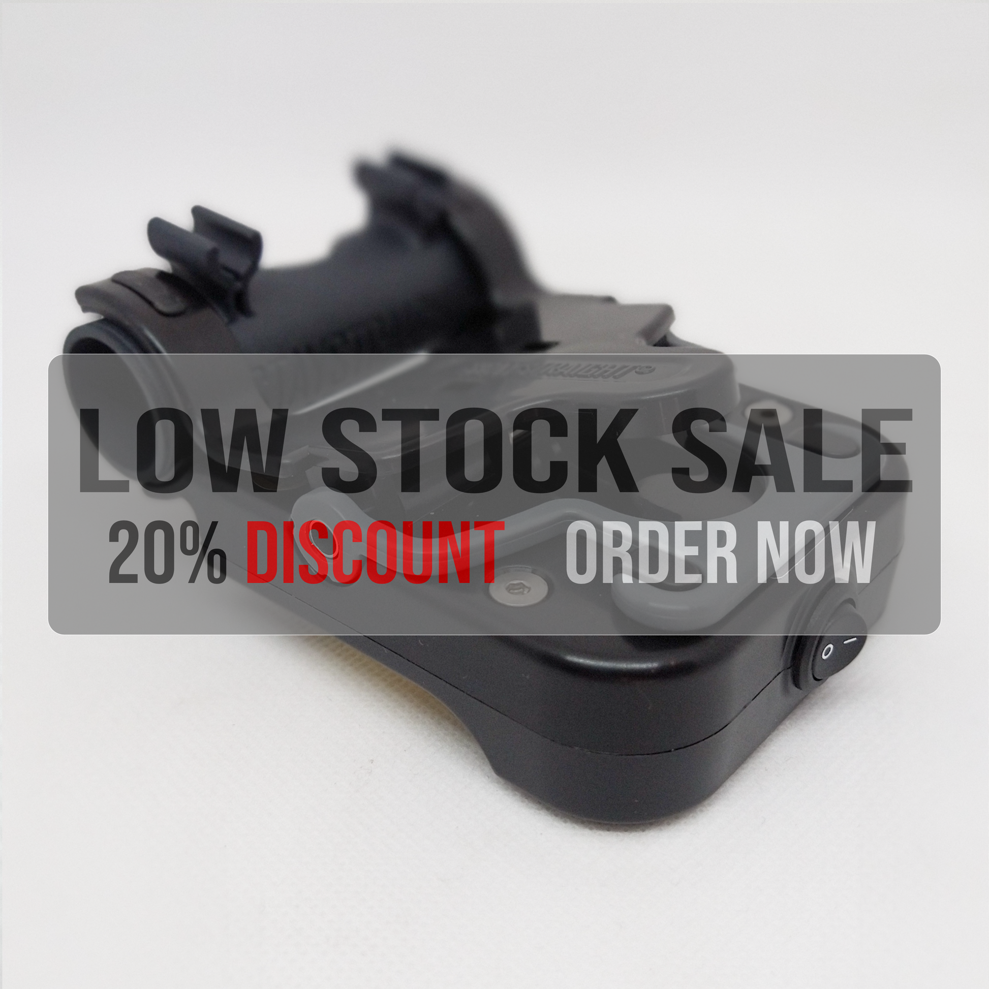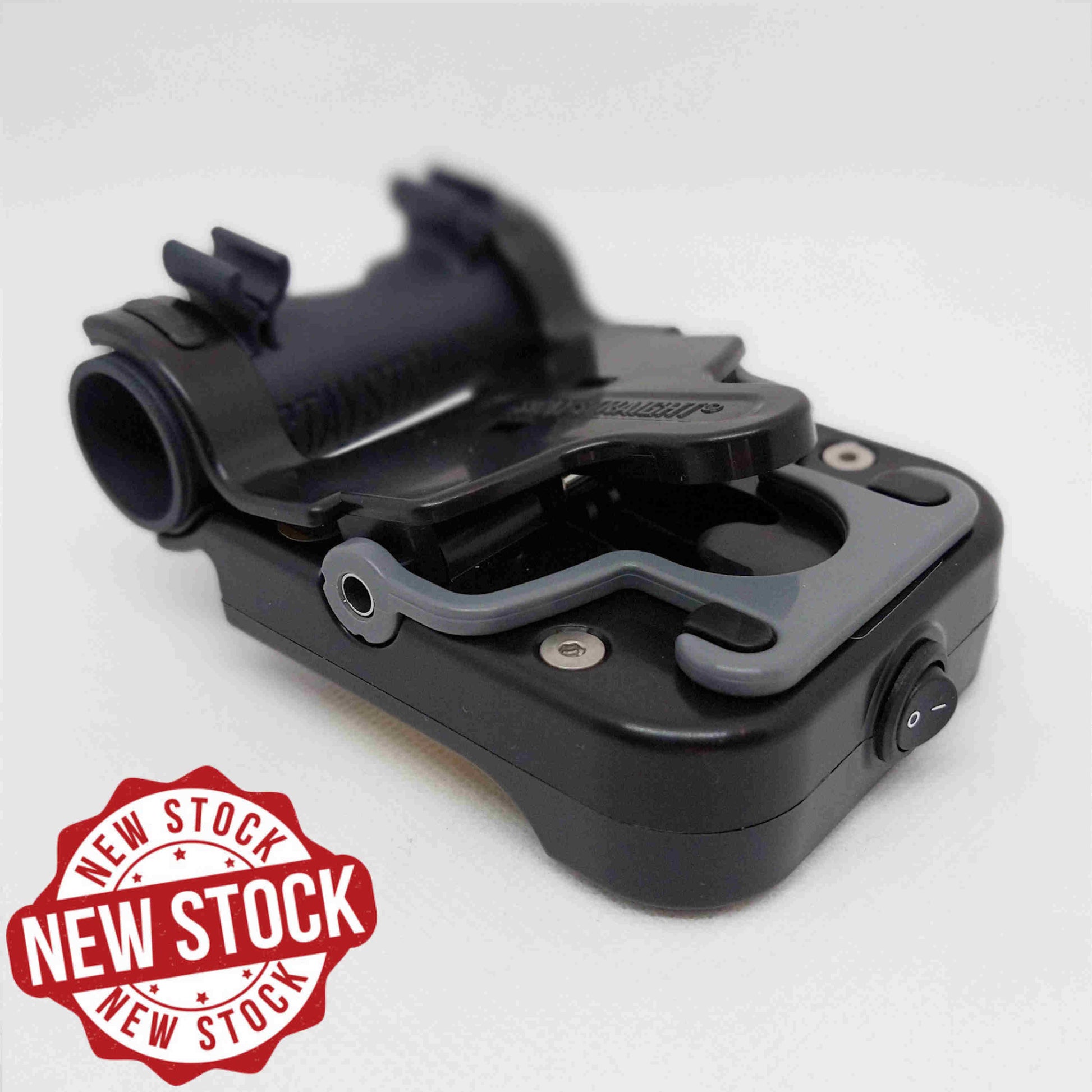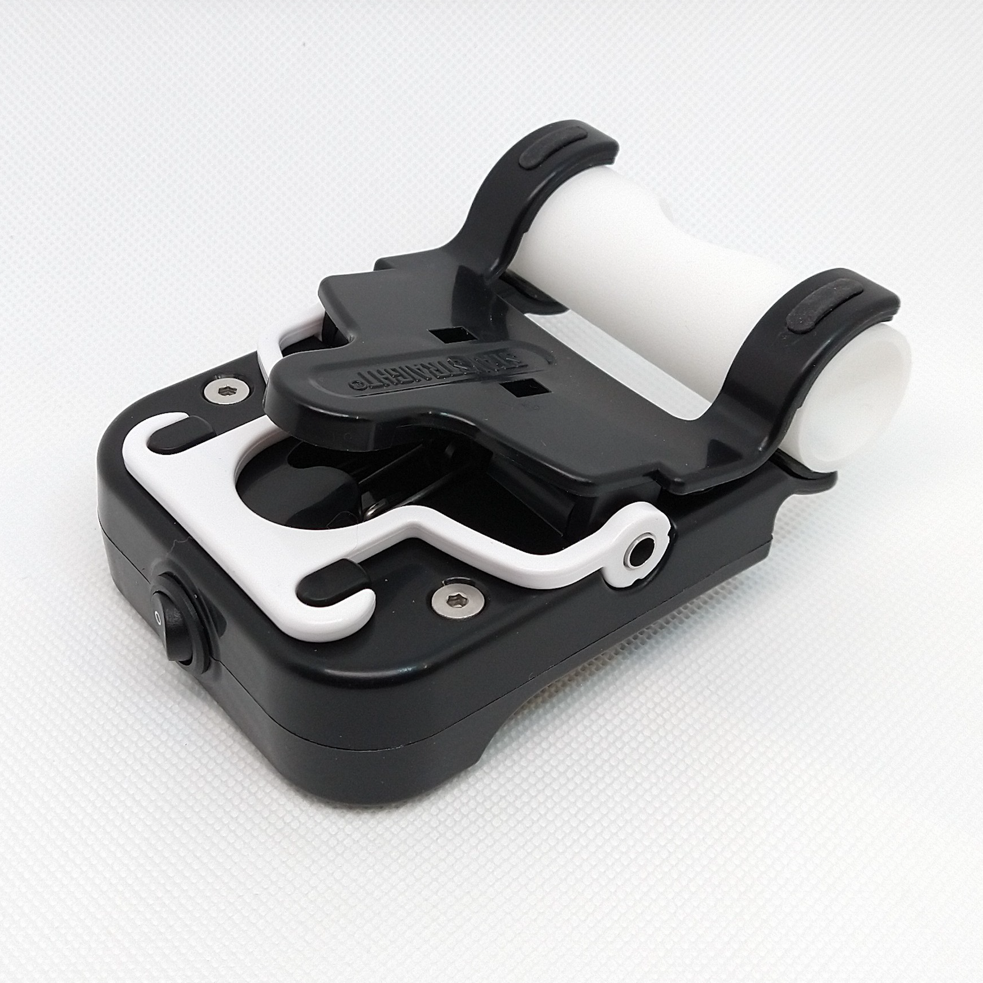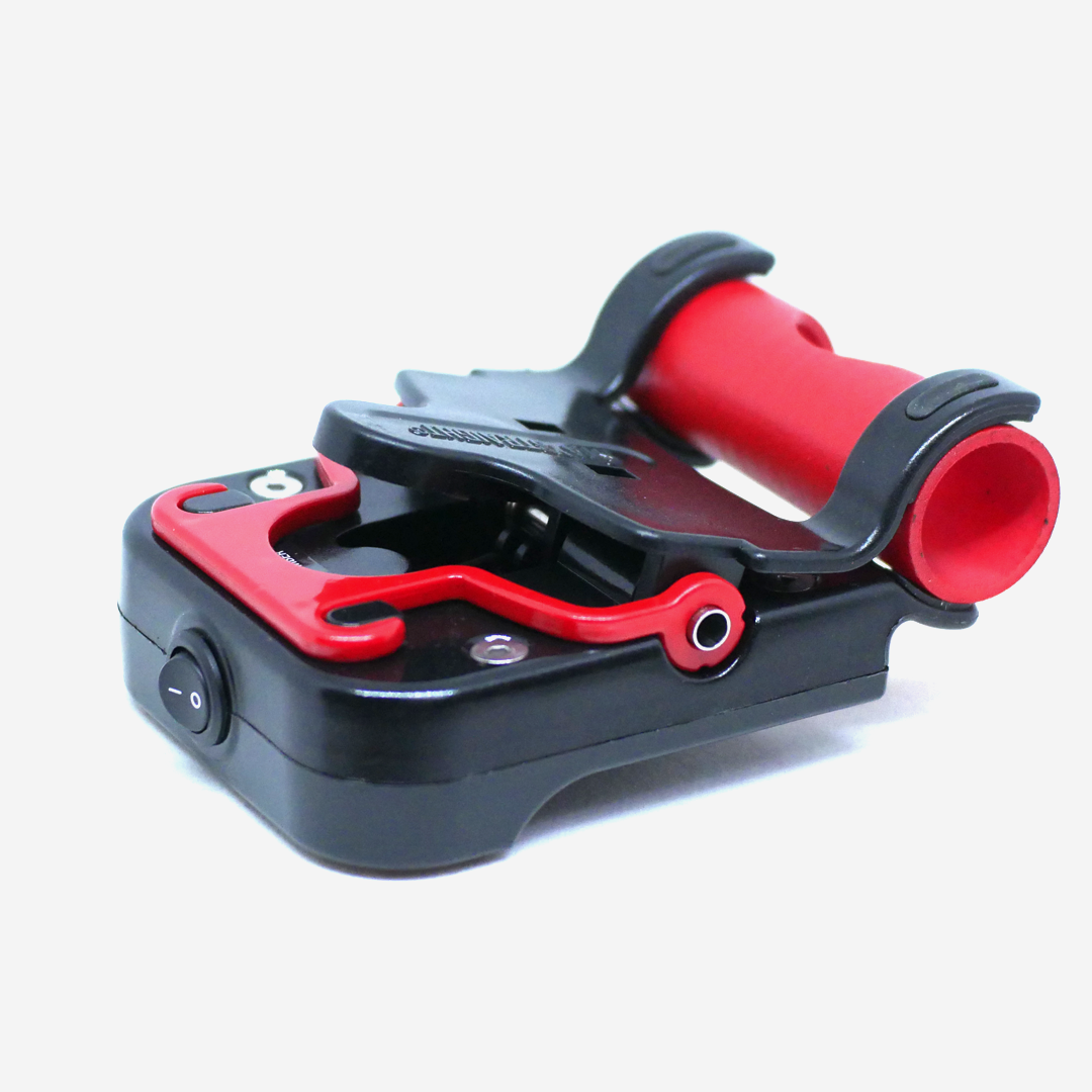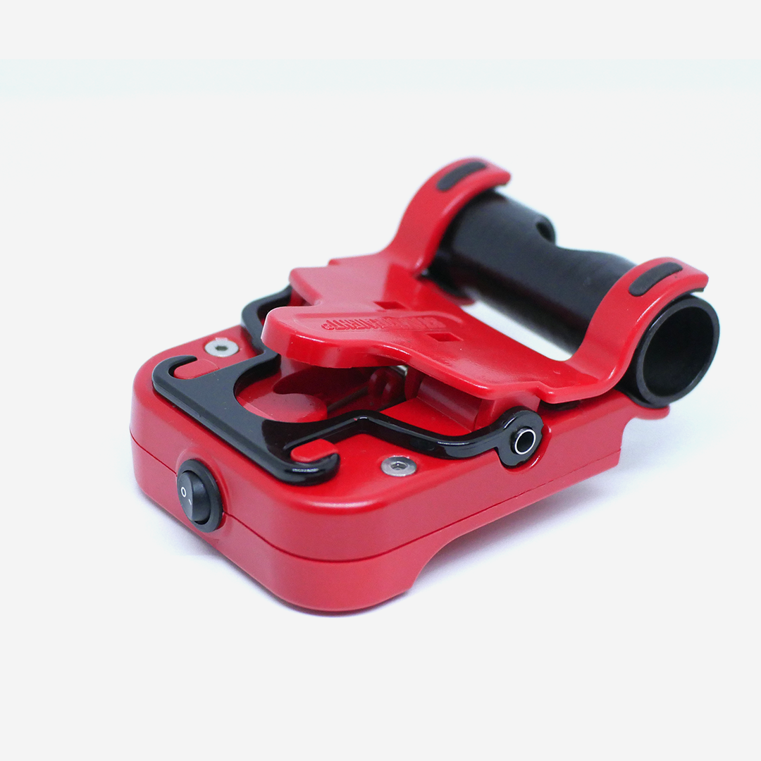Mânerul cu clemă permite o fixare sigură pe ghidon.