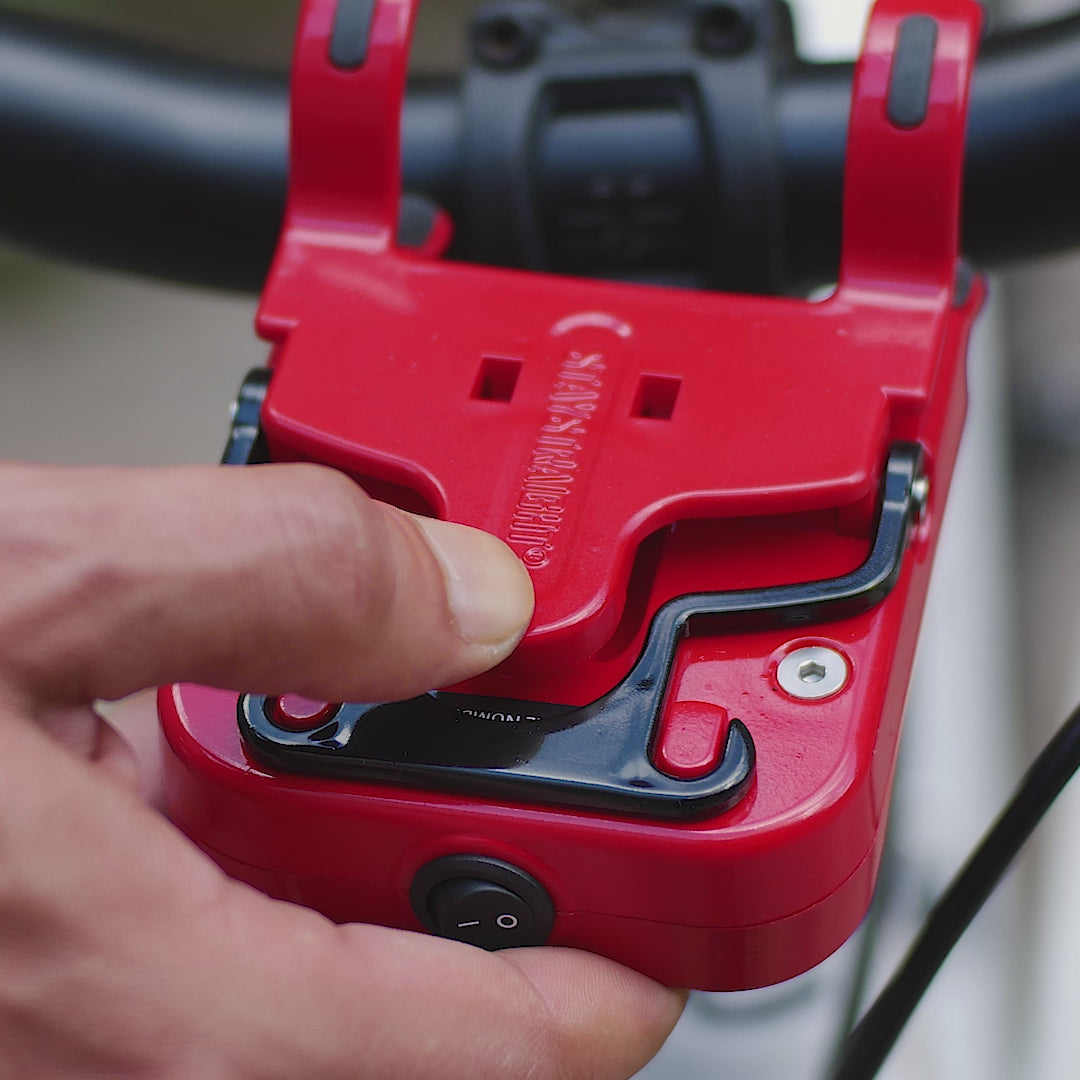 STAYSTRAIGHT revoluționează montarea și alinierea bicicletei tale. Instrumentul funcționează proiectând o linie laser paralelă cu centrul roții atunci când este fixat pe ghidon.
